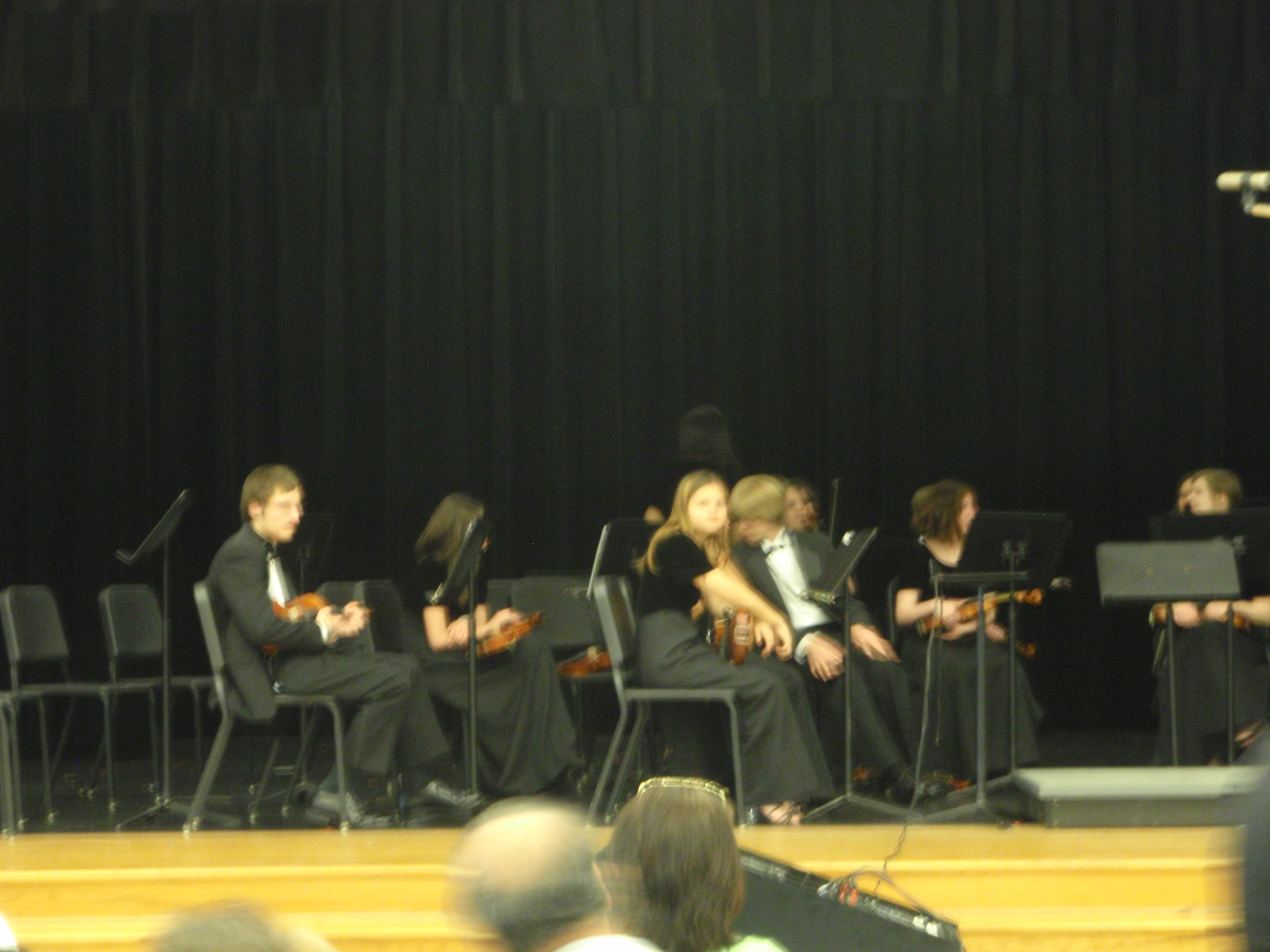the Pre-UIL orchestra concert… which wiped out Tuesday night. Don’t they look cute all gussied up? She hates wearing her gown… he actually likes wearing a tux (go figure).