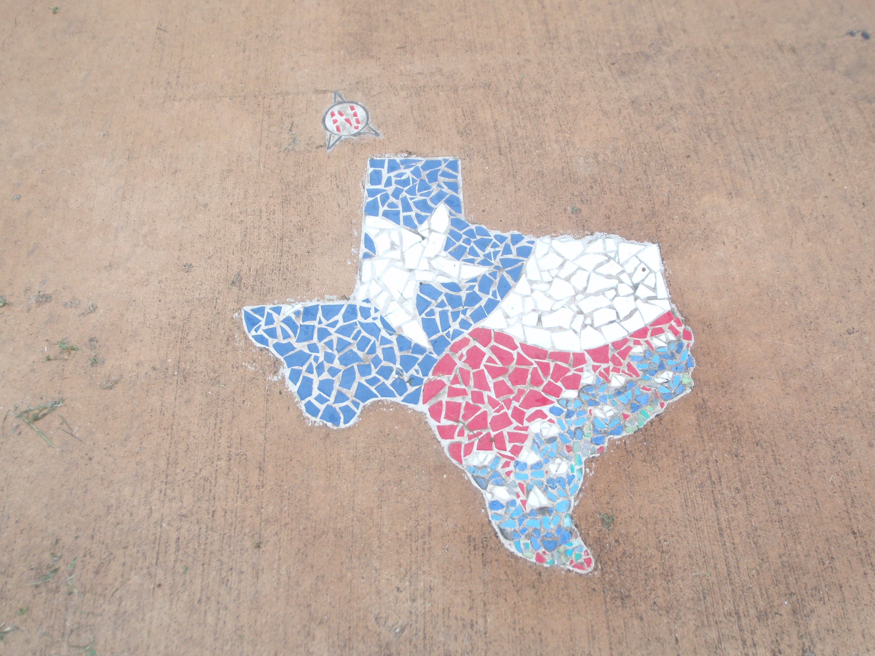 In case there was any doubt… the park where Vern’s is held is in Texas. This is a part of the sidewalk where I was directing the racers. I thought the inlay is really pretty. I have never seen anywhere as prod of where they are as Texas is…