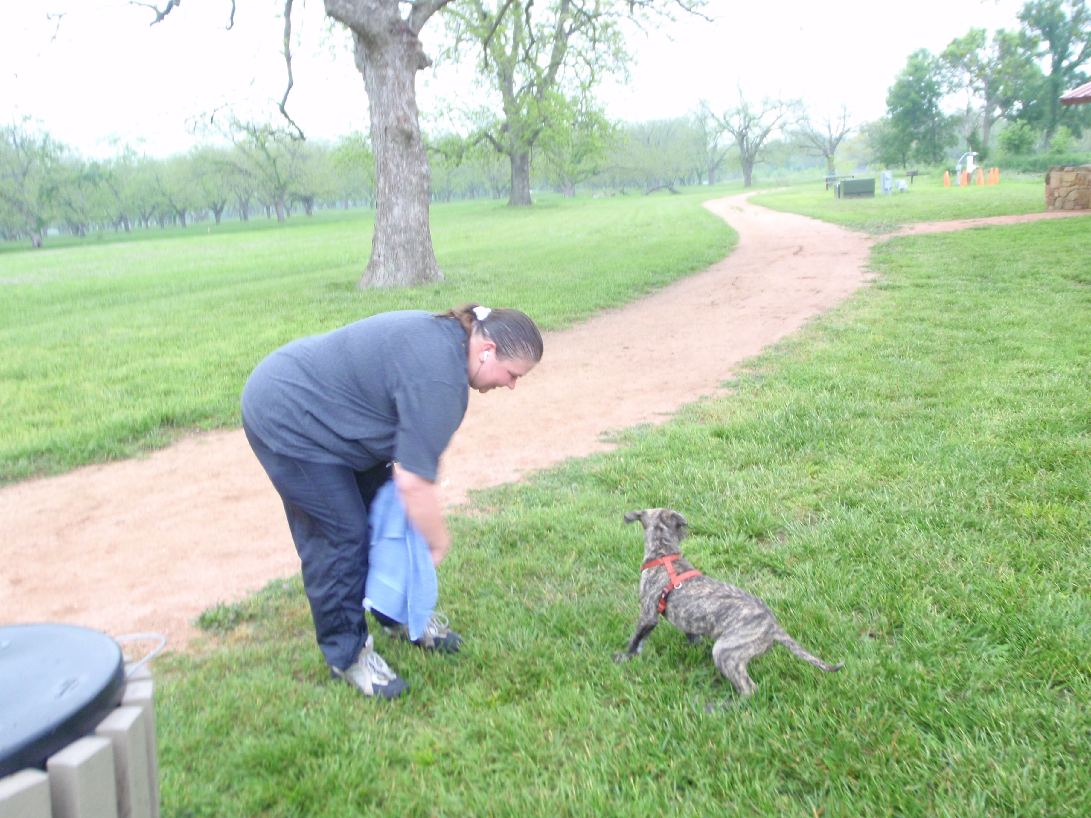 I actually didn’t feel as crappy when I got up Saturday morning (which is good since I volunteered to work at Vern’s No Frills 5K) and even though I ached a LOT I went and learned and had a wonderful time. The brindle puppy is such a wonderful dog… cute… chuck full of personality…