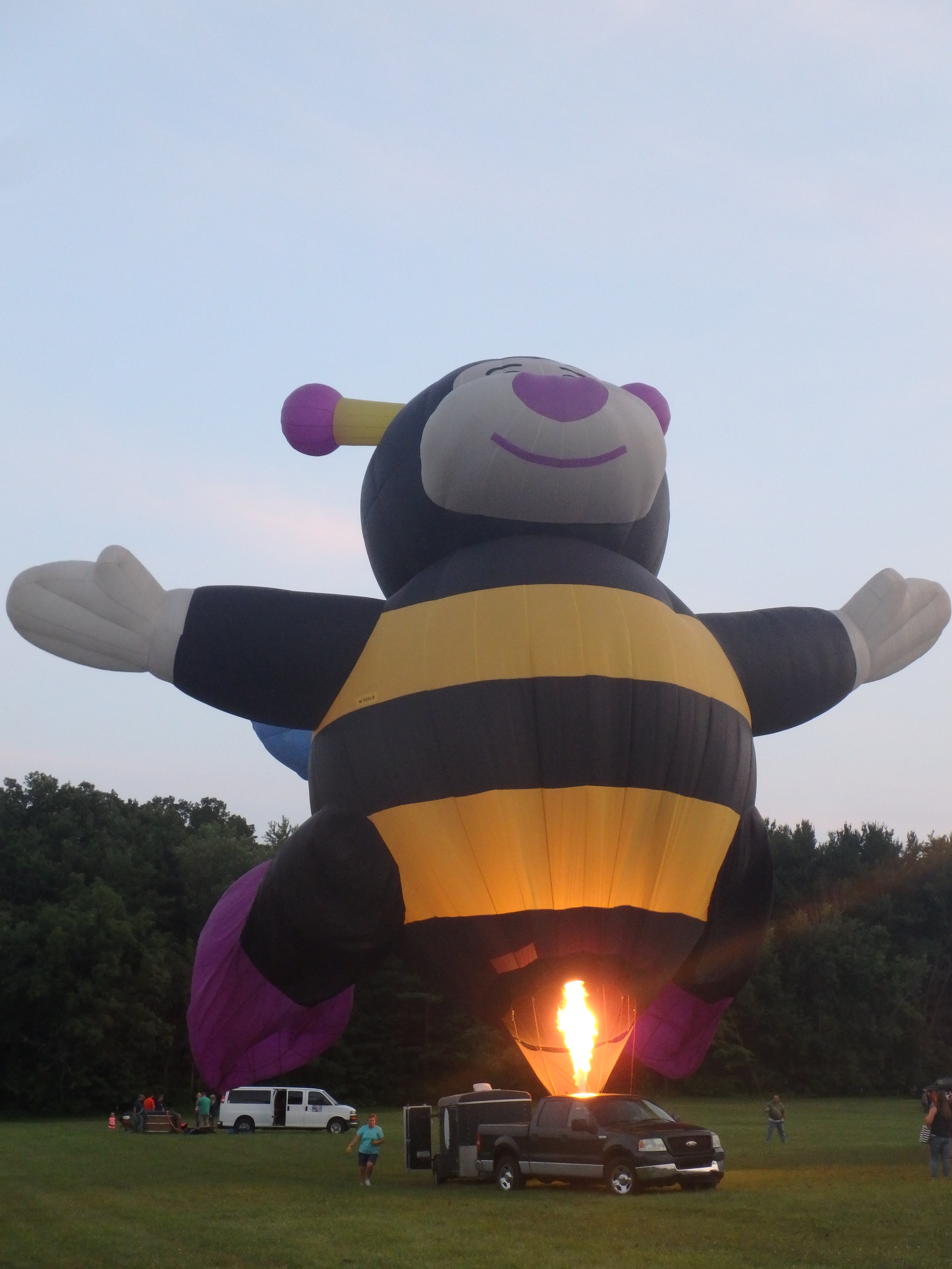 Thursday night I hurried home from work to go 50 miles to a balloon festival. I need not have rushed. The only thing happening when we got there was mass confusion and entirely too many people not knowing what the heck was going on. Several of those people tried to help. They sent us to parking (we paid a boat load of money to park close. We parked five blocks away because no one knew what to do when it rained) in the local college, they told us that we could get our hand stamps at close 6 (it was 5:51)… wait 7… NO… maybe 8… oh wait, you just spent 45 minutes waiting in line for something to eat… can you go get everyone OUT of line (you’re only 4 back… you won’t mind waiting 45 minutes again, right) so we could get the 4 free Pepsis from any place selling Pepsi (as long as it was THAT red white and blue tent WAY the hell over there, because they are the only ones who will ACTUALLY honor the coupons you spent that boat load of money on)… we actually got a seat on the bleachers, which was good because it’s rained so much you squished to your ankles if you tried the field.