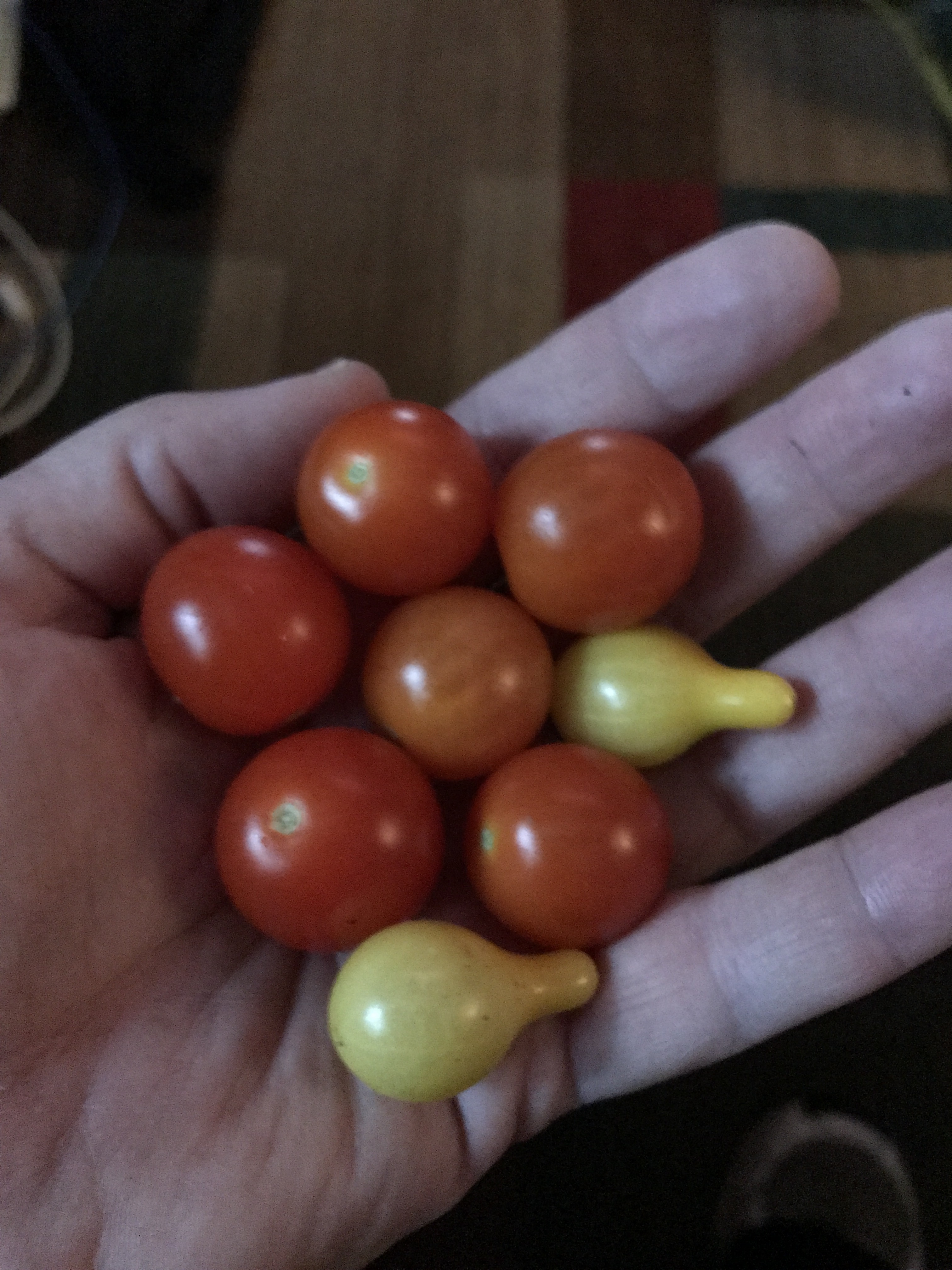 I checked the last couple tomato plants in the greenhouse this morning while I was filling feeders and I found these!!! And one of the plants is till flowering so if the weather holds a while and I keep the water bottles up close to the pots, maybe I will have tomatoes through a bit of December.