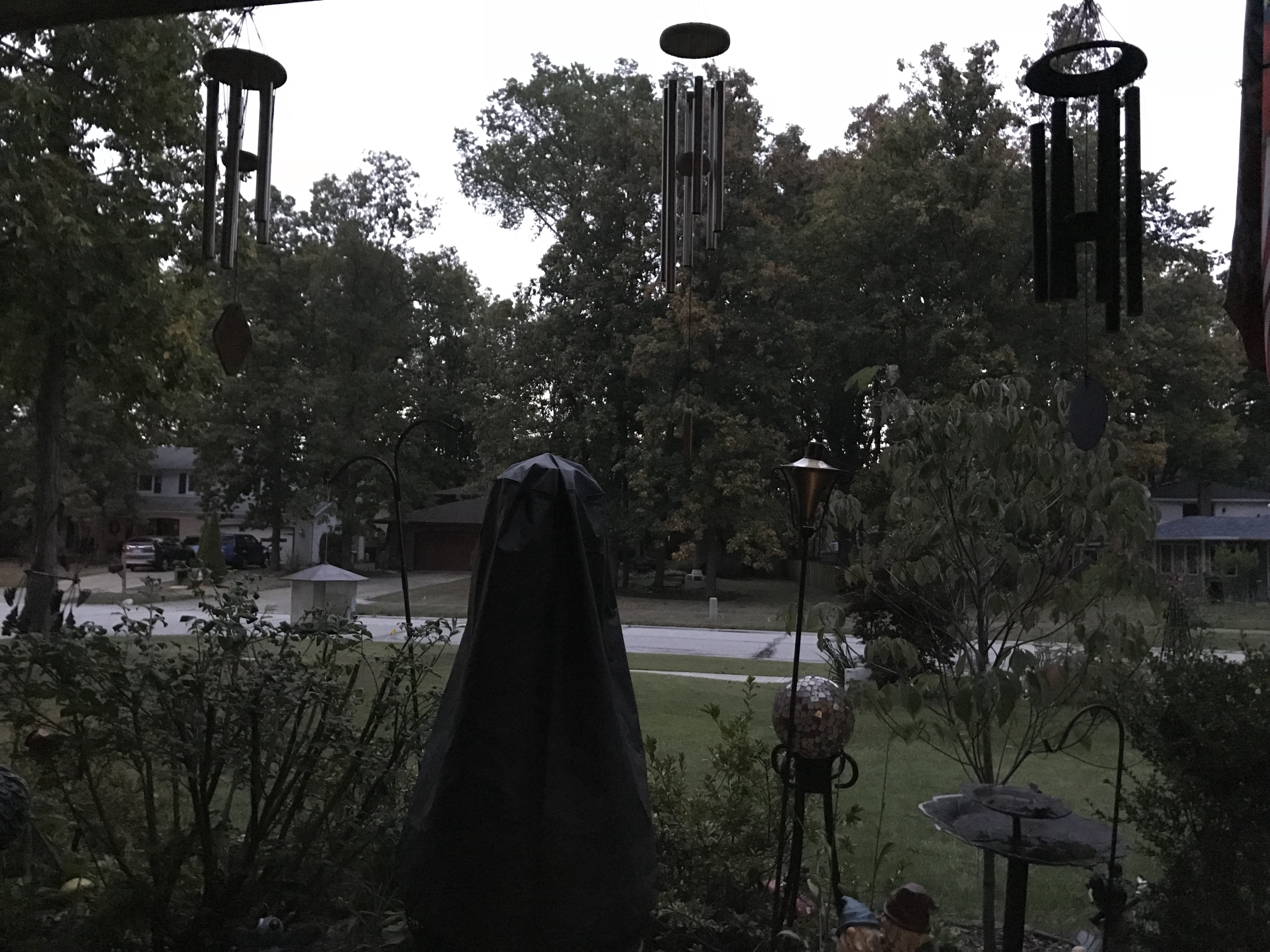 It’s a beautiful (if rather humid) morning in upstate Ohio. Peanut and I are sitting on the porch listening to the fountain and the crickets and cicadas singing. There isn’t a breeze in the air… nothing stirring any of the wind chimes, which would have probably made this about perfect… but.. .hey. Coffee is… well, it’s instant and about room temperature this morning, but it is definitely coffee.