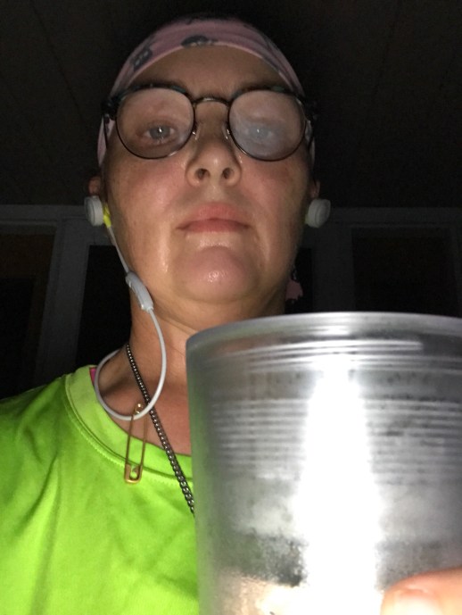 This morning we took a little different route.  With the miserable time she had just breathing before we started, silly woman opted to not do the hilly cul de sac but to try to stay on the more level playing field.  That means I got to see most of our favorite route but I also got to add in an extra out and back to the bigger road and an extra cul de sac we don’t usually do.We dodged a slew of puddles (there was a big rain yesterday afternoon and when the air is this super saturated with yook it just doesn’t dry so fast) but didn’t pass a single car this morning.