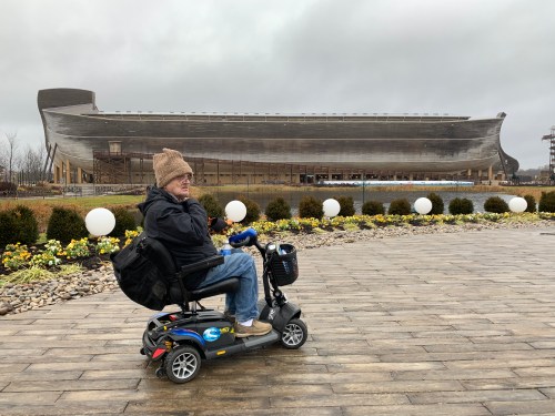 Yesterday he had to take his scooter on a bus. He had to wait for the bus to O’Neal and the ramp to come down so he could drive up on.