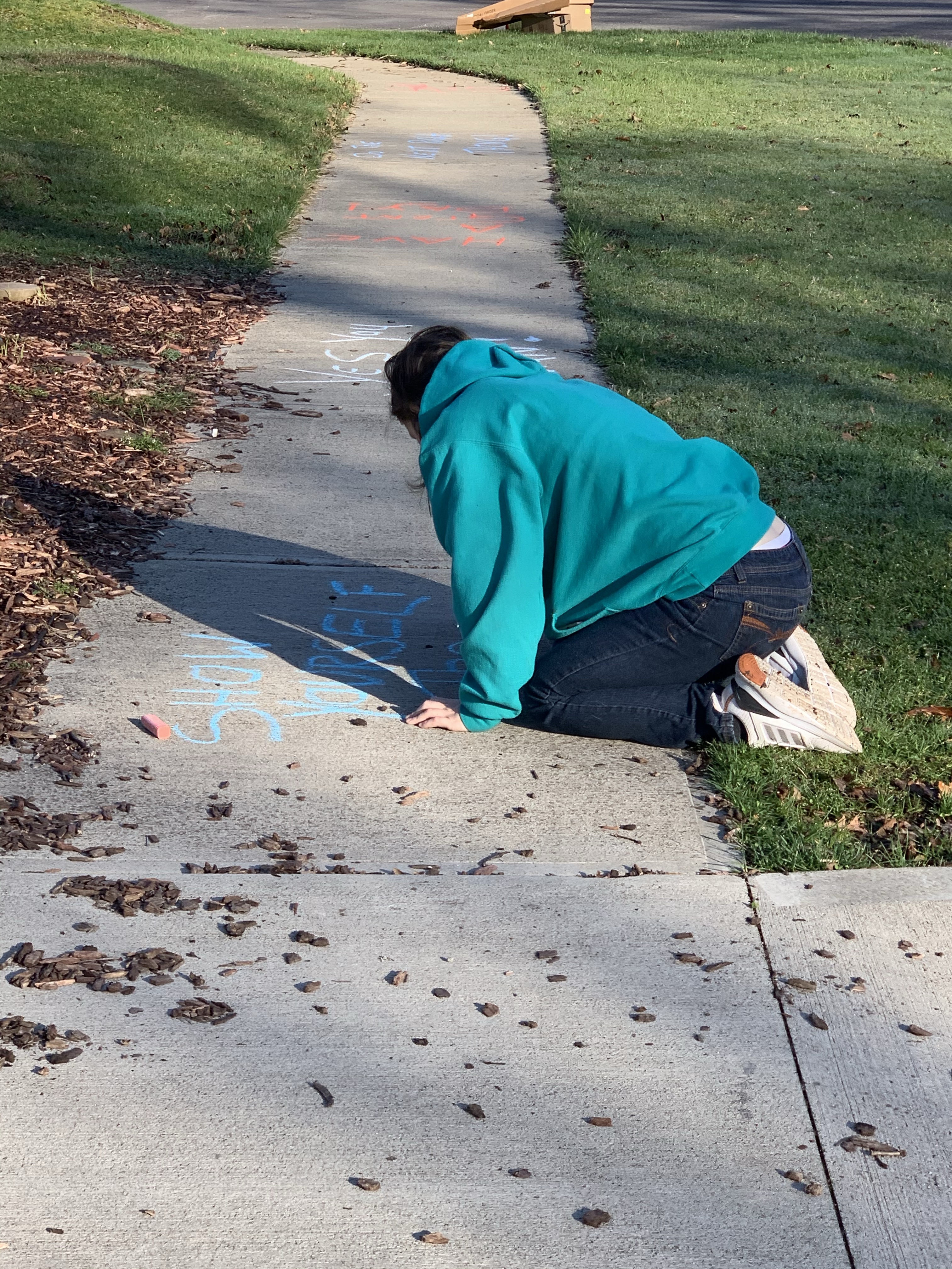 With spring actually starting to look a little like spring, and with the local schools not going back any time soon… maybe I can infect a few of the neighborhood kids with decorating the sidewalks. Maybe, as a small community, we can bring a little sunshine to people who are trying to fight their way out of darkness that is the current feeling.