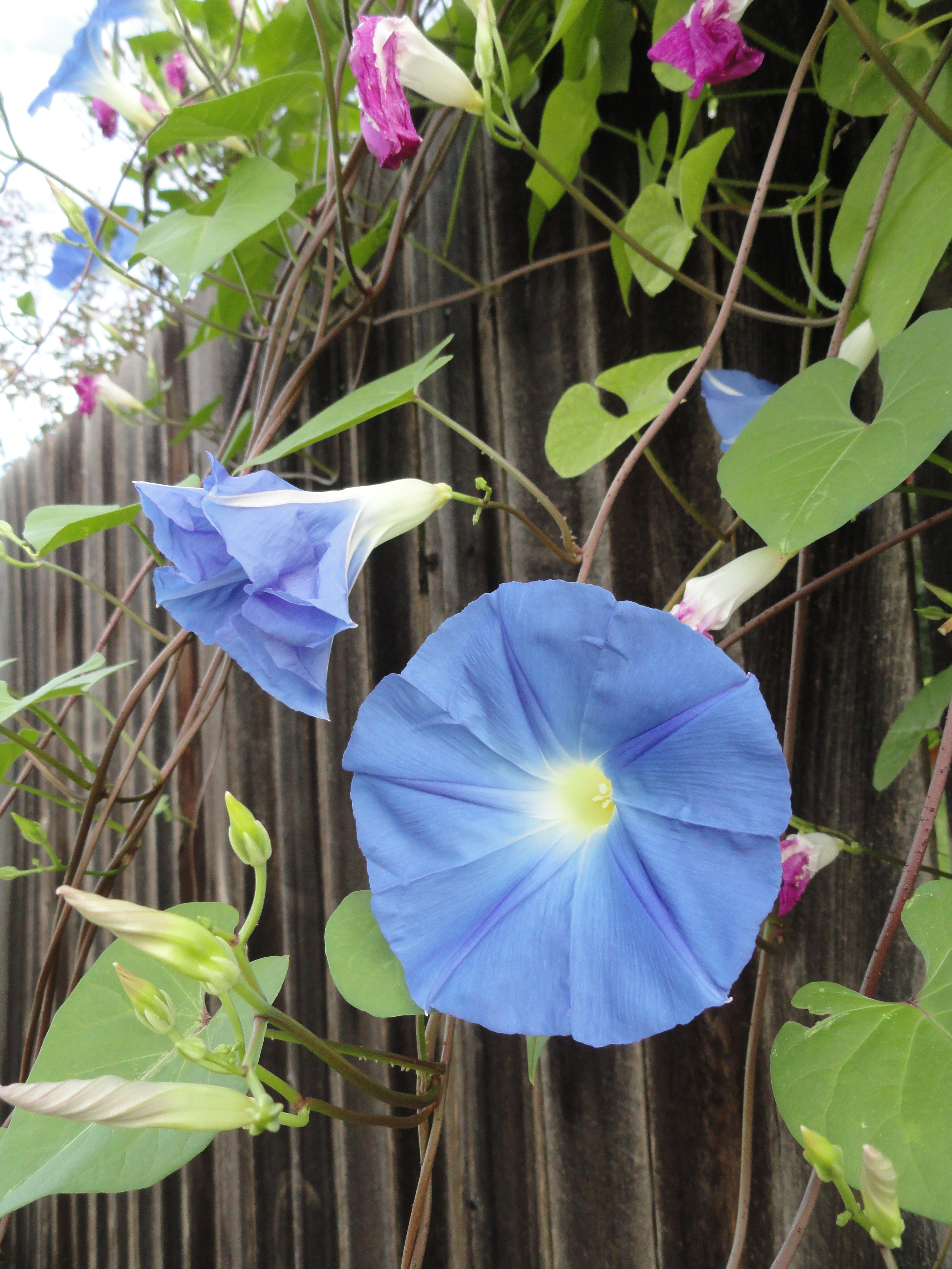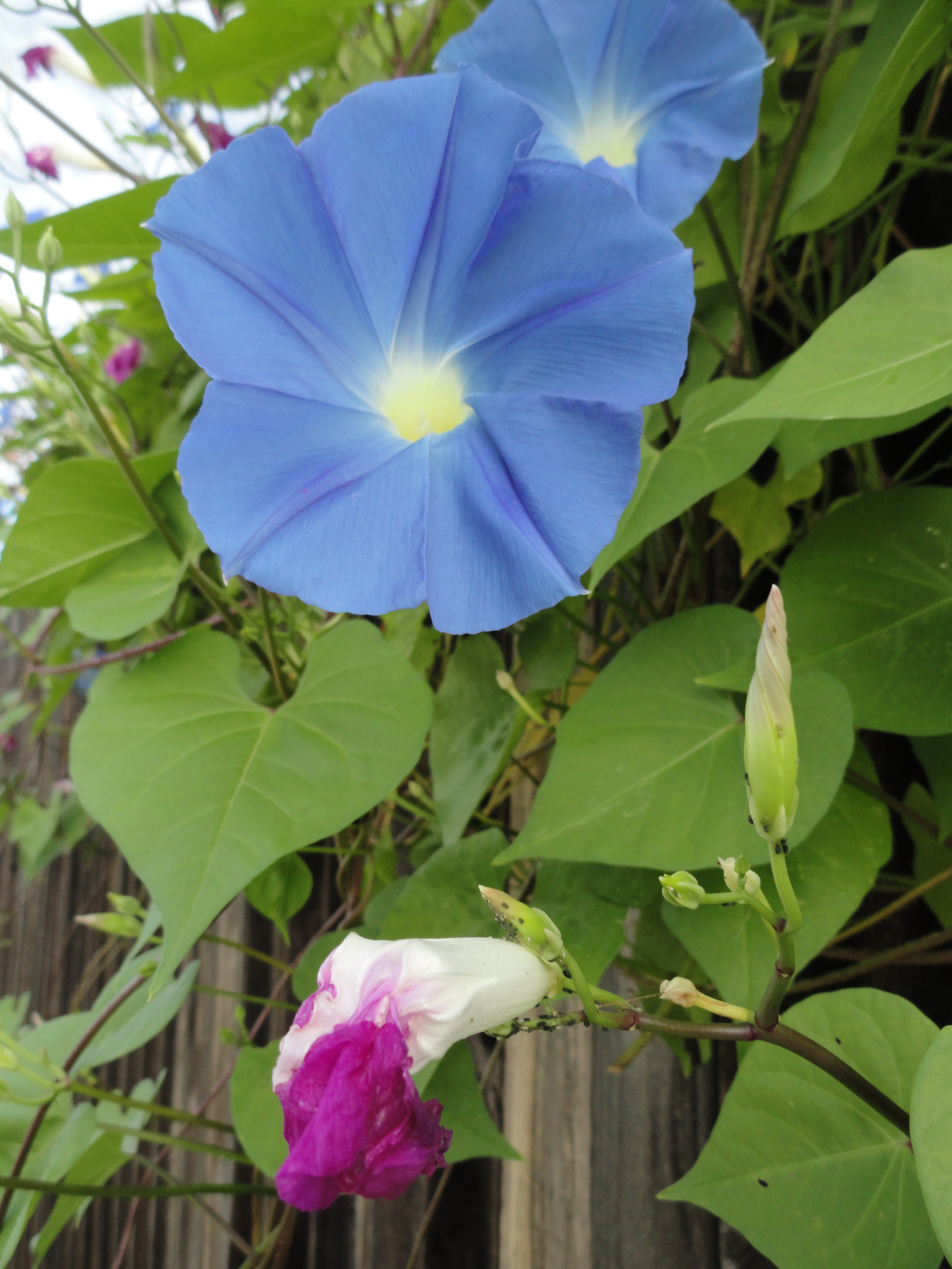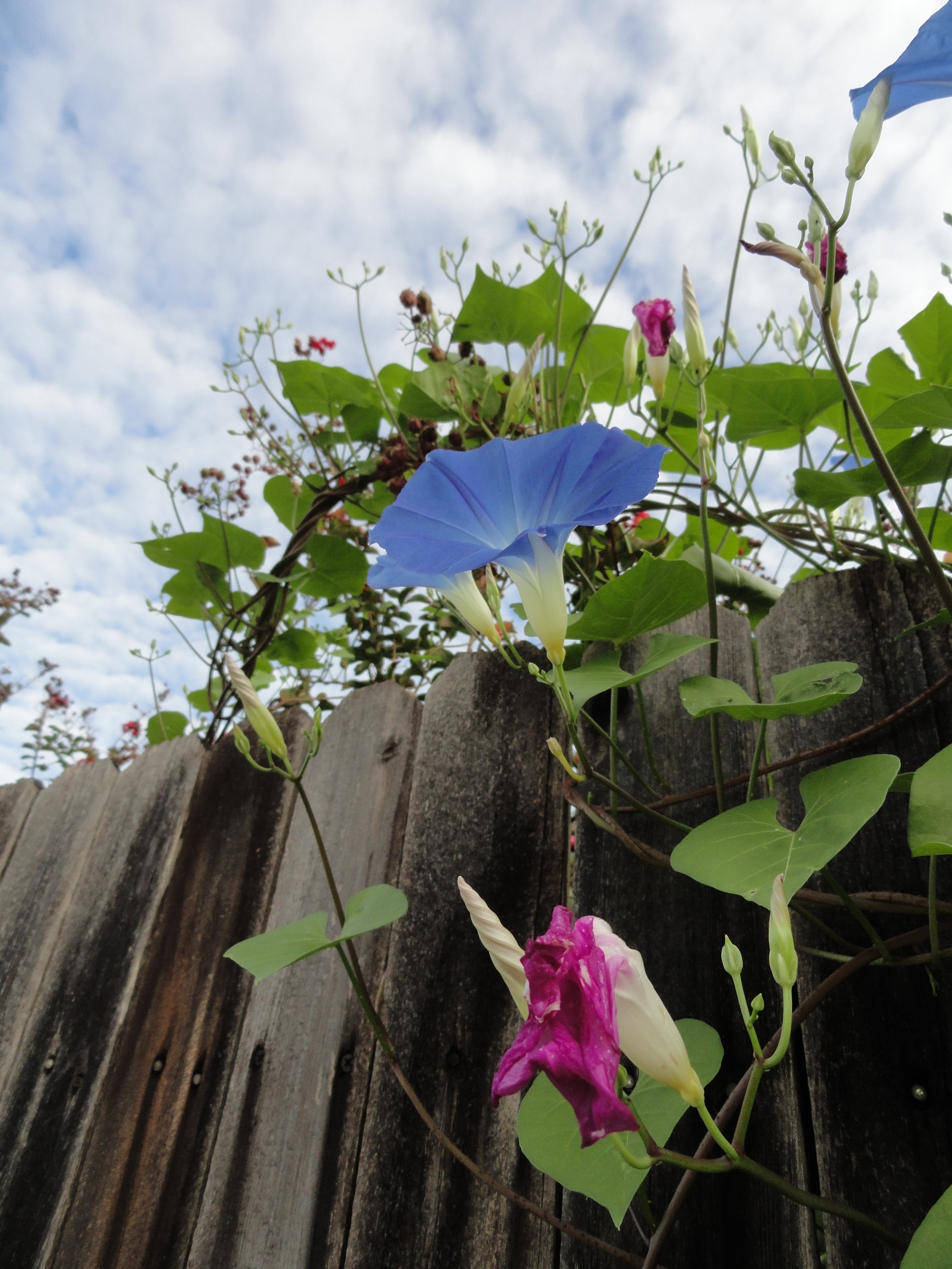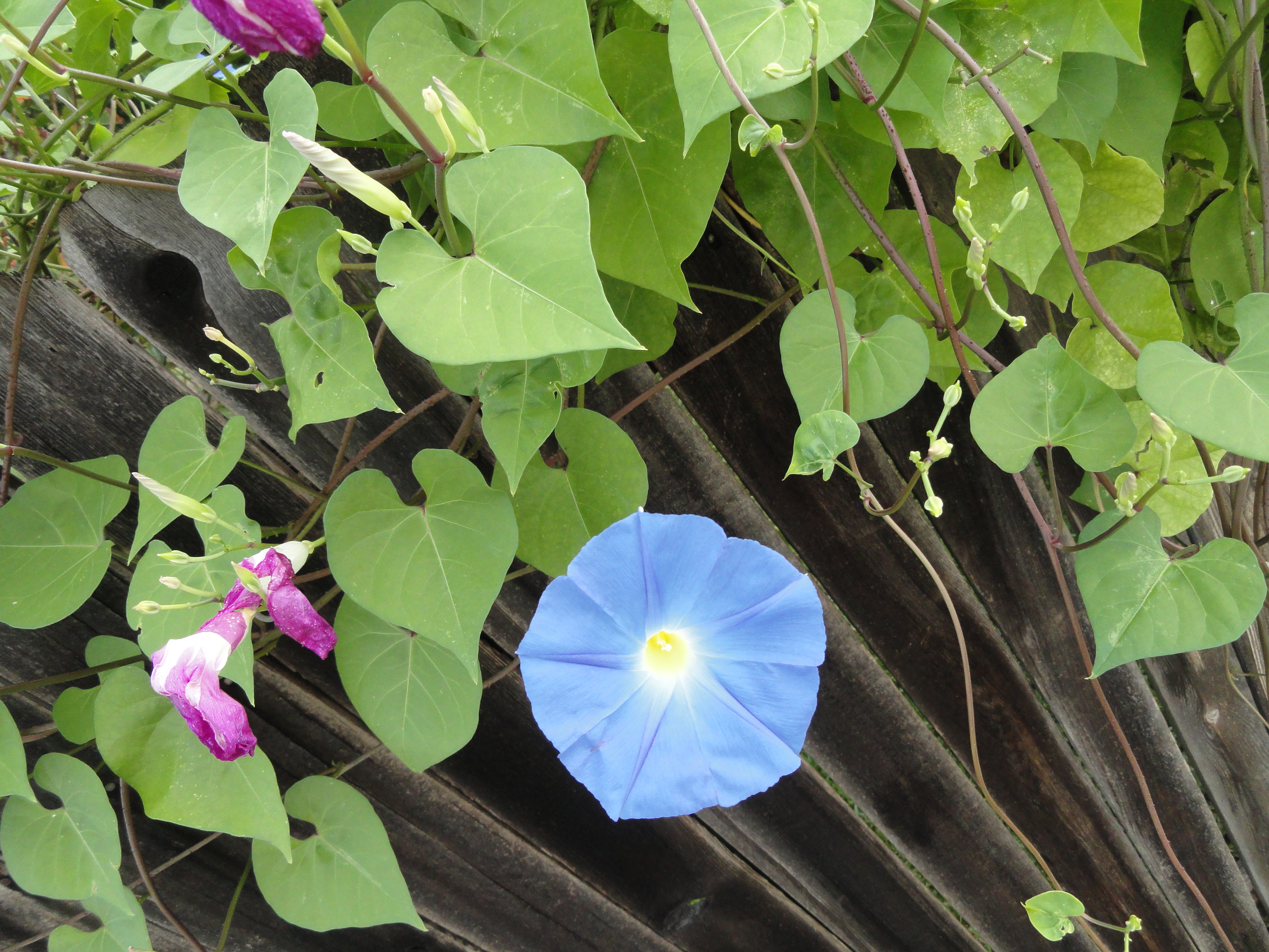 I was GOING to go out into the dark. My race is in the dark. I keep thinking I need to train for the dark. But when I finally went out, it was daylight. And in that, it made so much difference. I got to see some of the prettiest morning glories climbing and creeping and shining in the sun. It wasn’t so hot that they shriveled right away. They were stunning.